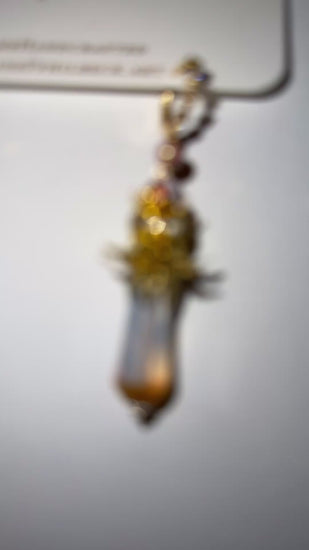 Iridescent matte glass with floral crown and iridescent prismatic pink glass on brass Huggies