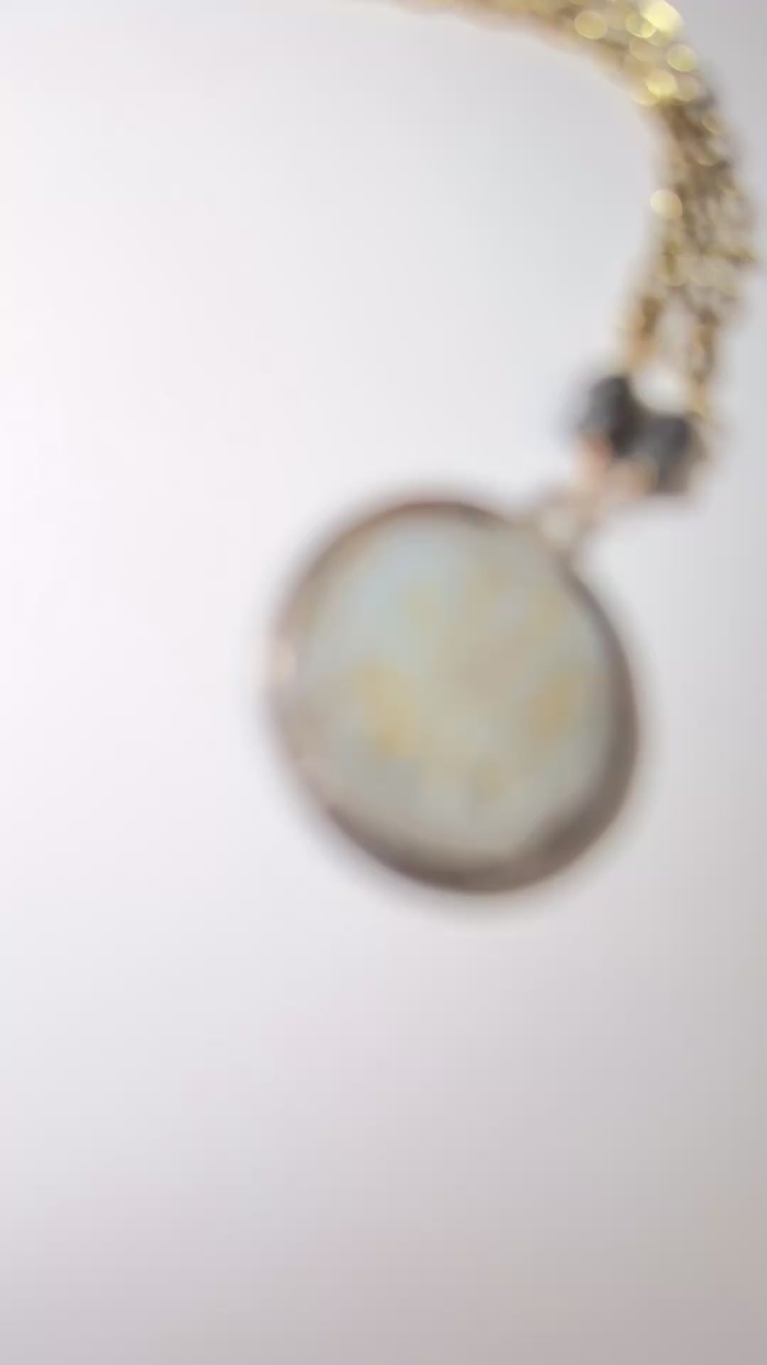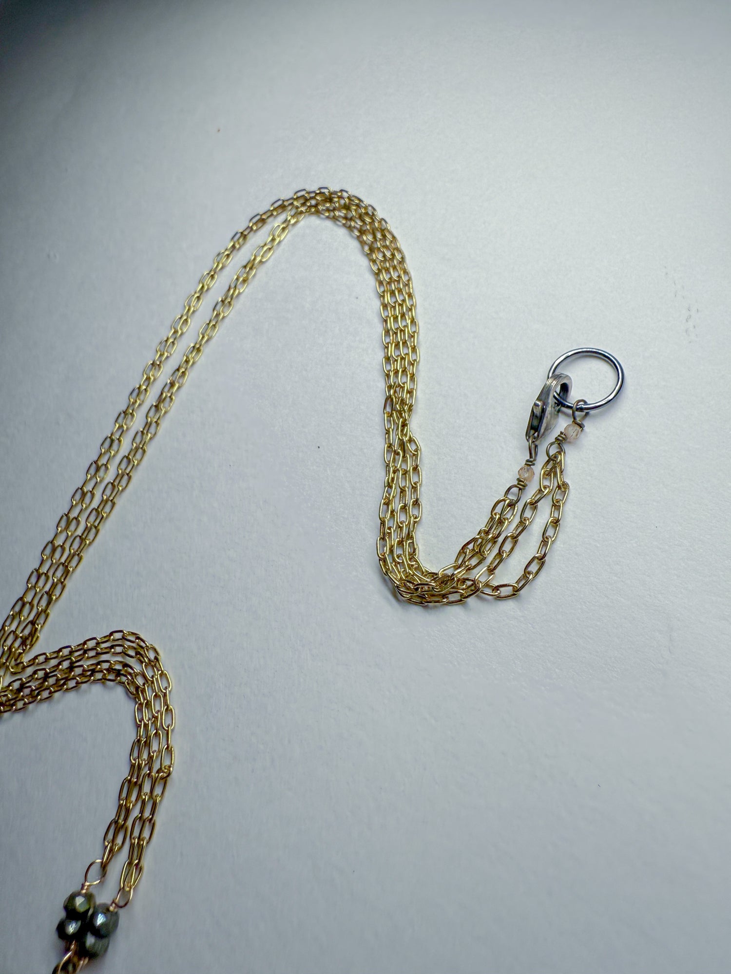 Old World style coin with wheel detail on double brass chain and sterling clasp